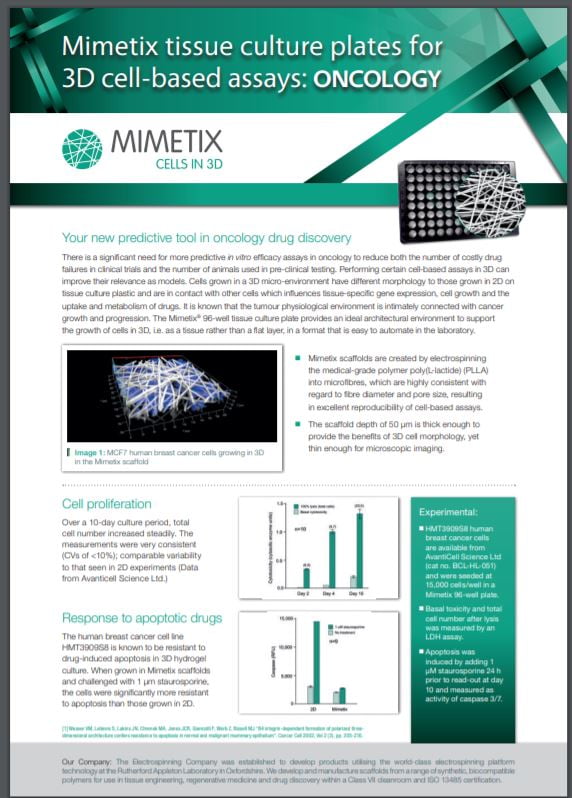Simple, highly-consistent and easy-to-use 3D models hold great promise to reduce the number of costly drug failures in clinical trials, provide a more realistic tumour models, and generally lead to more useful data and more relevant and successful research. There are a range of techniques to grow cells in 3D including spheroids and hydrogels. A scaffold is useful when cell-to-cell and cell-to-matrix contacts are important to cell morphology and behaviour, for cells that do not in nature form spheroids, where more cells are required for sensitive assays than can be grown in a spheroid and where diffusion of gases and proteins is desirable.