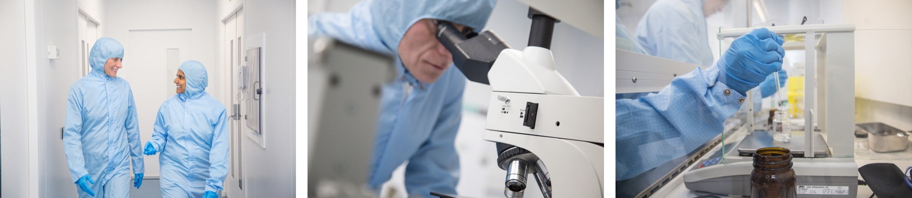 The cleanroom modules house electrospinning machines from three manufacturers as well as equipment for drying, cutting, welding and packing, and scanning electron microscopes for analysis.
