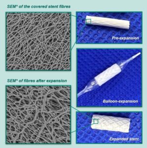We select from a wide range of GMP-grade degradable or non-degradable polymers to tailor a medical textile covering to a customer’s device. Both external and internal surfaces can be coated with membranes designed to deliver the desired functionality. Membrane morphologies, such as fibre alignment, fibre diameter and pore size, are adapted to permit cell infiltration or create cell barriers, guide cell migration, improve mechanical properties, and control permeability.
